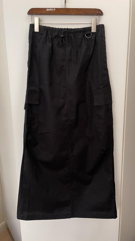 Нова з біркою, не підійшов розмір Тканина цупка бавовняна, схожа на лляну Талія 37-41 Стегна 52 Довжина 96 Крючок для карабіну/ключів, пояс на затяжці, дві кишені по боках на липучці, а також кишені по боках на поясі, позаду розріз для зручного кроку