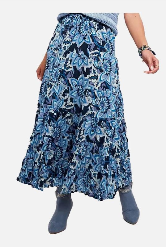 Длинная юбка макси Joe Browns в стиле бохо, синяя, хлопковая, с многоуровневыми складками, размер 14. Новая, сток, без паперловой этикетки. Длина 95 см ПОТ 40-50 см Цена 800 грн.