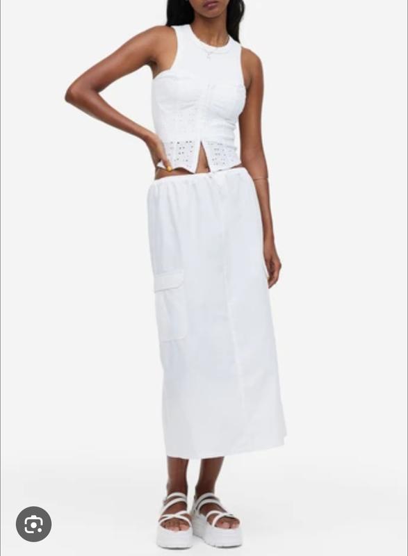 Юбка карго в очень красивом состоянии, талия на резинке, по бокам карманы, ткань не просвечивается. Длина 81 пот 40, тянется до 49 поб 54 по дополнительной информации обратитесь.