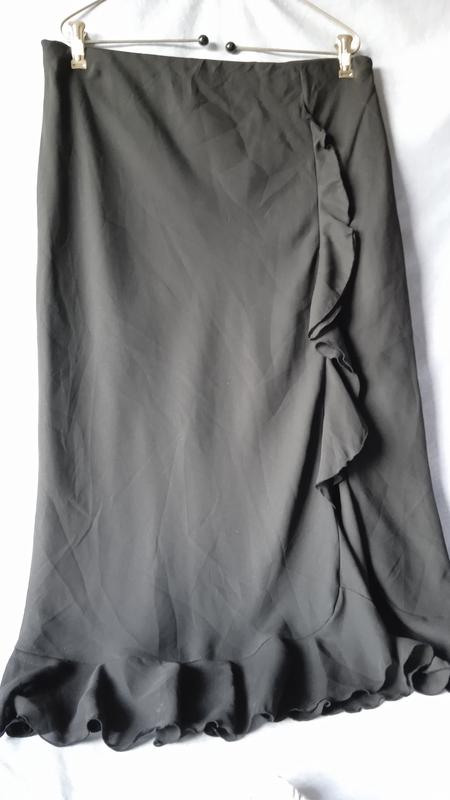 черная, нарядная, на подкладке, длина92,пояс50в спокойном на резинке тянется61максимально,бедра66-71,