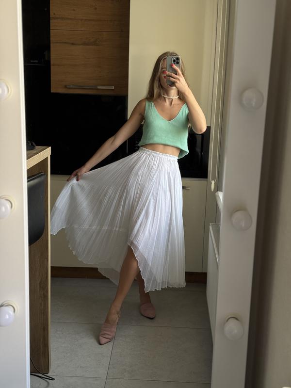 Юбка длинная белая миди пышная размер м плиссированная в горох ментол