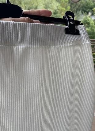 Спідниця біла в рубчик без підкладу, талія на резинці, гарно тягнеться розмір м л, довжина міді.