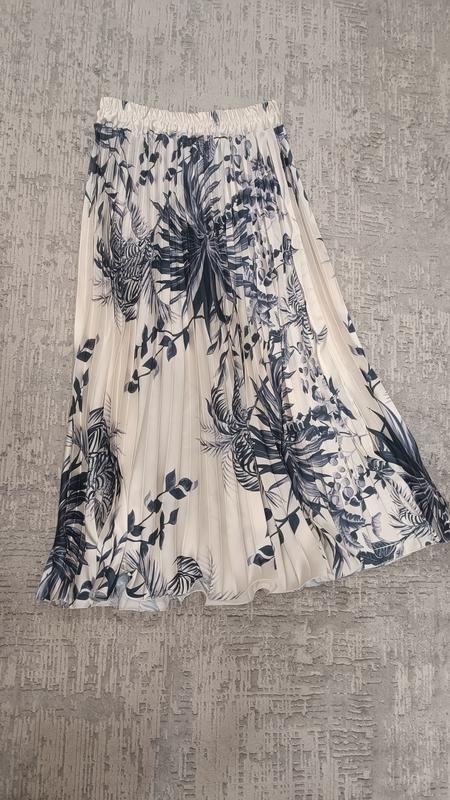 Нова спідниця-плісе. Молочного кольору з квітковим принтом. На талії резиночка. Довжина-86 см, напів обхват талії-35 см.