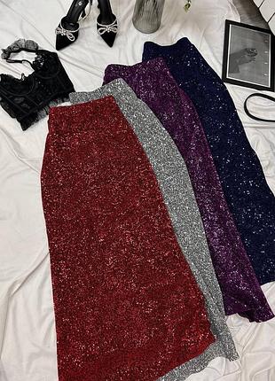 🔥Юбка макси прямого кроя, декорирована пайетками. Высокая талия. Она универсальна – прямой силуэт позволяет стилизовать эту модель для разнообразных вечерних образов. 🎨Цвет: синий, бордовый, серебряный, фиолетовый 🧵Состав Полиестер 100% 🧵Материал сетка с блестками ‼️Размер универсальный:XS-L ⤵️ 🪡Объем талии:62-74см 🪡Объем бёдер:88-100см 🪡Длина по боковому шву 110 см 💳 Цена:1350грн Арт:45885 ‼️Количество ограничено!!!️