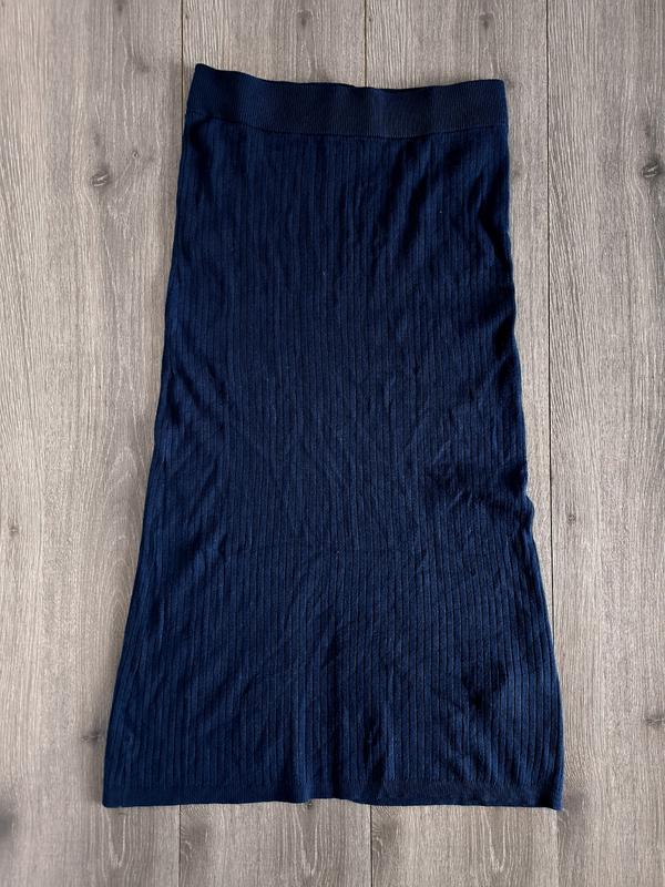 Спідниця довга максі в'язана трикотажна в рубчик темно синя,46 р