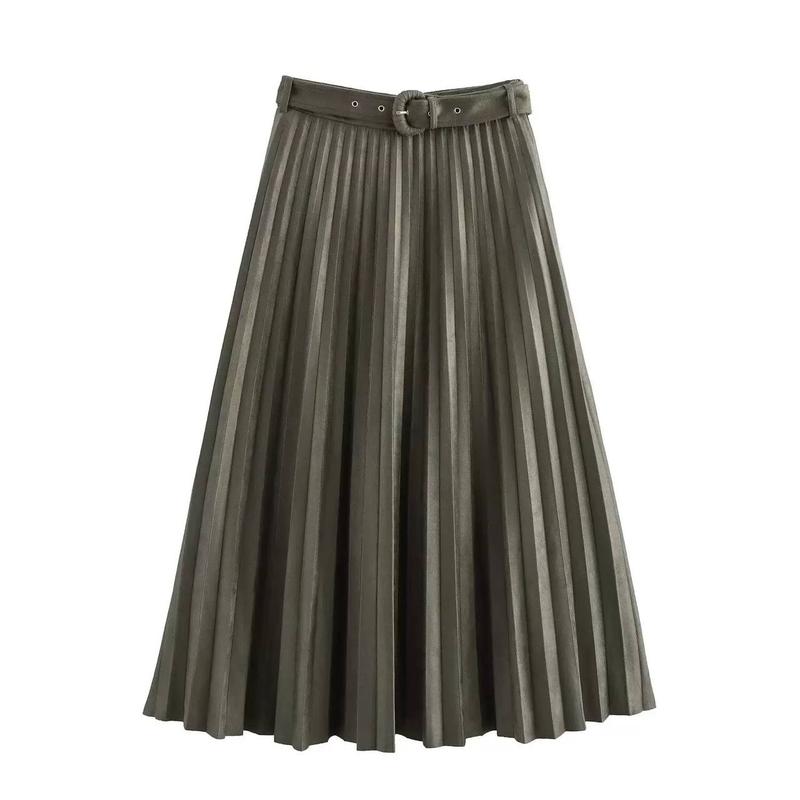 Замшева пліссована спідниця в темно-оливковому кольорі з поясом🔥 Розмір: s(44-46) Довжина 91см Анс