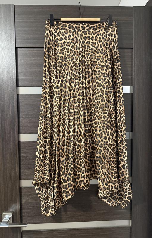 Стильна асиметрична спідниця, актуальний леопардовий принт, розмір с Стан дуже гарний але є невеличкі нюанси, на фото обвела, схоже на невеликі затяжки, із за принту при носці буде майже не помітно, в ціні врахувала