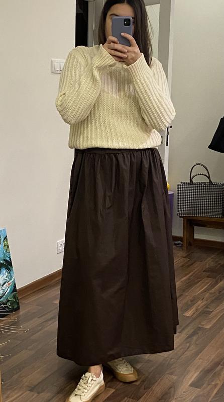 Спідниця нова, бренду Foya, з біркою. Купувала тут же на шафі, але не вписала в гардероб Розмір one size, як по мені краще брати на М і далі розмір Об’єм талії 57-95 см Довжина 94 см На поясі резинка, яка гарно тягнеться і завʼязки, можна регулювати висоту посадки 👌 В складі 97% бавовна, 3% еластан