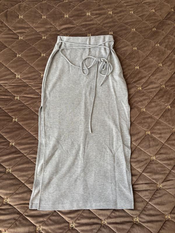 Гарна спідниця , сірого кольору у на розмір С. Має розрізи на ніжках з двох сторін.