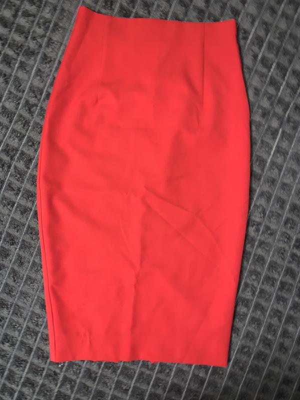 Стильна жіноча спідниця-олівець насиченого червоного кольору. Модель має застібку ззаду та невеликий розріз внизу, що забезпечує комфорт при ходьбі та додає елегантності образу. Чудовий варіант для офісного стилю або святкових виходів. Стан відмінний.