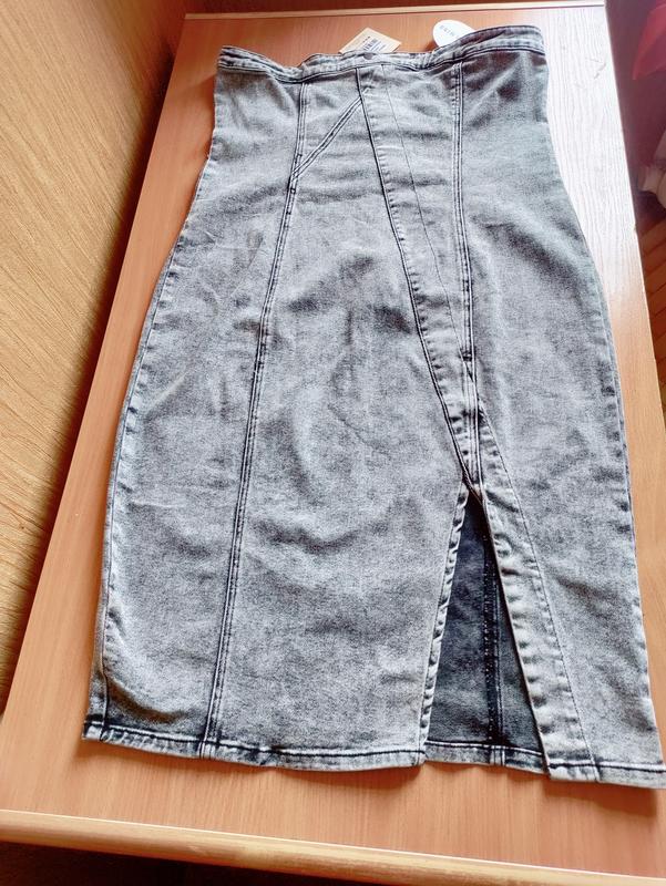 Джинсовая юбка с заниженной талией с разрезом на ноге высота разреза 28 Пот 50 Поб 50 длина с поясом 95 пояс 4 Хорошо тянется Сзади молния 38 см