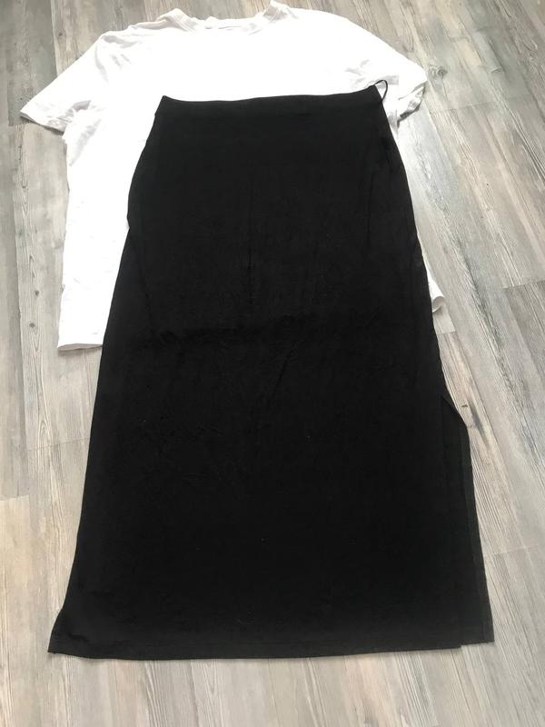 Черная длинная юбочка По бокам разрезы Пояс широка резинка Вискоза