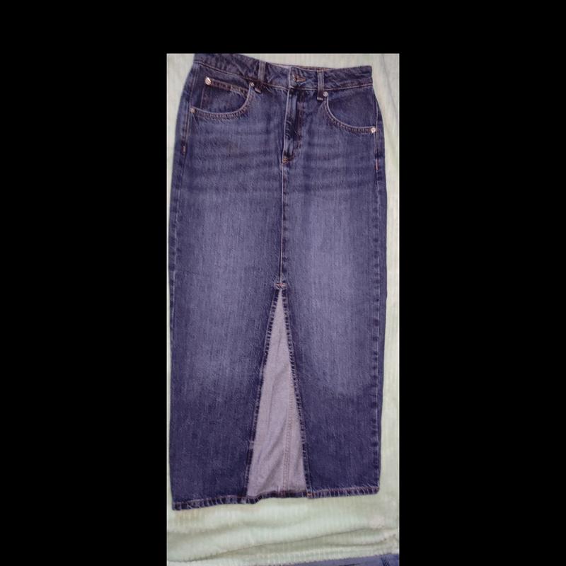 Юбка джинсовая с разрезом спереди. Плотный джинс. Размер будет на S, небольшая М