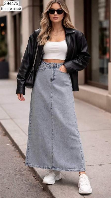 Джинсова спідниця, колір світло блакитний (30) 40р довжина 97см пояс 38см поб 55см Добре сяде на 44р Тканина не тягнеть ся