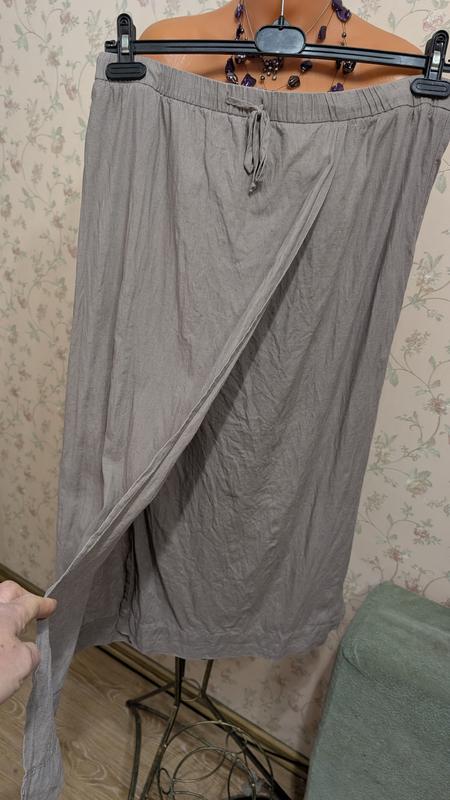 Юбка лен,на лето именно оно,гарный серобежевый натуральный цвет,на запах,верхность резинка шнурочек, стягивается.резинка в спокойствие талия 93см, тянется до 103см,внутри шнурок, мощнее, больше.Стегна будут до 113 см, тм запах, позволит и расходуется, немного, длина 81см
