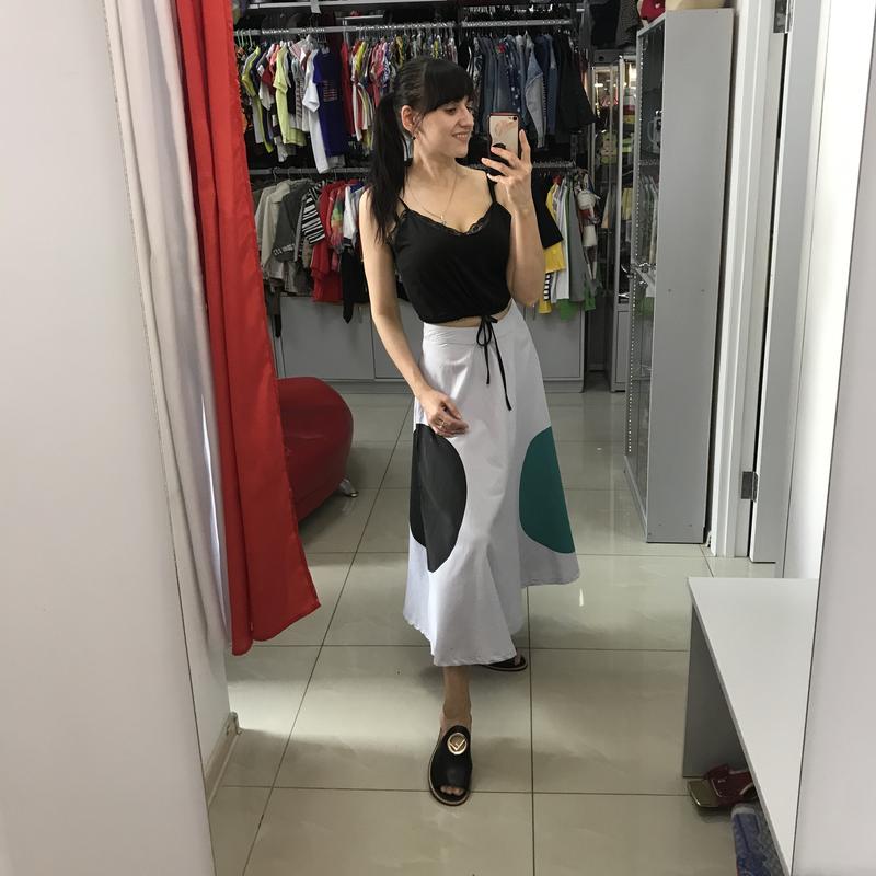 Стильна спідниця міді із геометричними акцентами .Виконана із 100% натурального хб волокна Розмір один l ( маломірить) Додаткові заміри та фото скидаємо за заміром