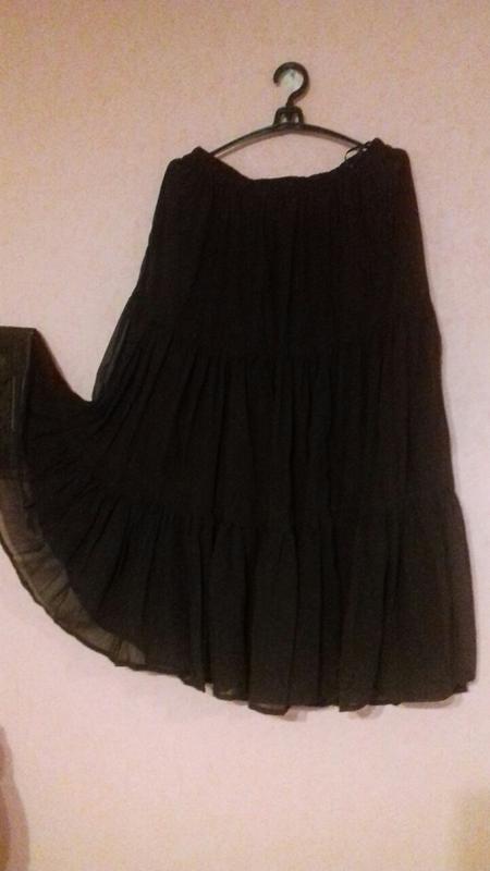 Пышная юбка на подкладке, цвет - темный шоколад, ткань шифон, подкладка х/б. Размер 50-52. Пояс на резинке, тянется хорошо, может пойти и на больший размер. Длина юбки 89 см, талия в нерастянутом виде 80см. По дополнительной информации пишите пересылку только по предоплате