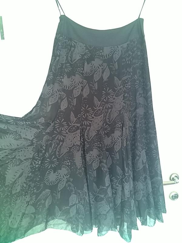 Шикарная, брендовая юбка из натурального шелка. Юбка годэ с дополнительными элементами. Цвет черный и темно серый орнамент. На подкладке Талия 38 бедра 50 длина 90