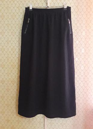 Юбка трикотажная на резинке, два кармана на замке. ОТ-66 см.(тянется до 74 см), ОБ-96 см. Длина 75 см.плюс пояс 4.5 см.