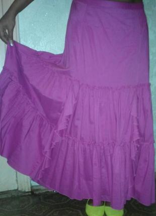 Пишна спідниця в підлогу колір фуксії з воланами на підкладці.