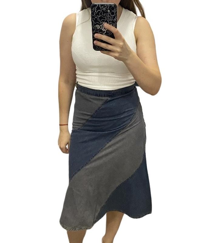 Джинсовая длинная комбинированная юбка. Размер указан 14, но идет на С-М