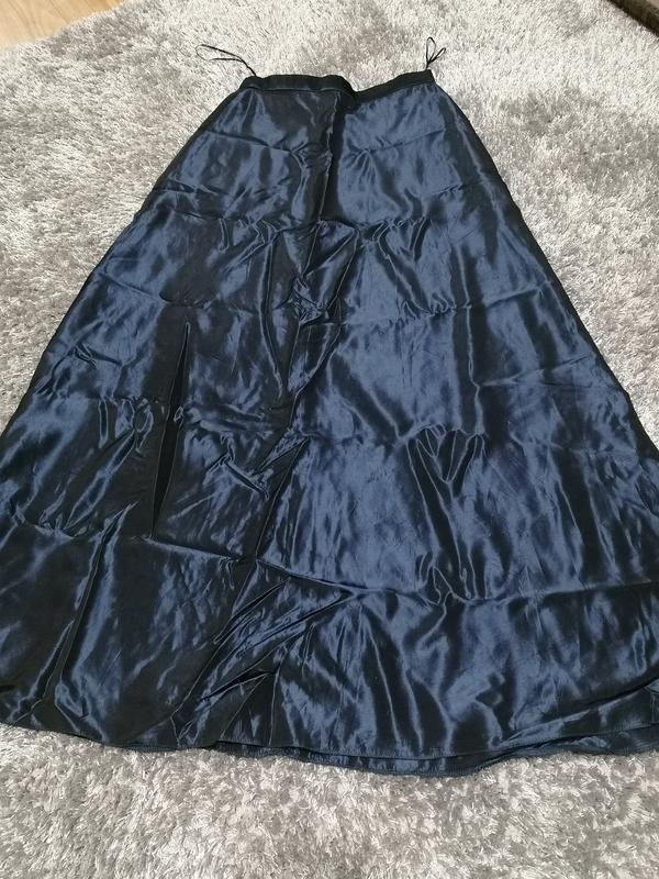 Атласная юбка с подкладкой в пол. Цвет темно-синий. Камера упрямо не хочет передать настоящий цвет из-за бликов.
