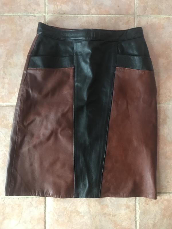 В очень хорошем состоянии юбка,качественный кожзам ,есть нюанс один «подкладка»на фото видно ,обхват талии 78-80см,бедра 102 см, длина 61см.(одежда сток )