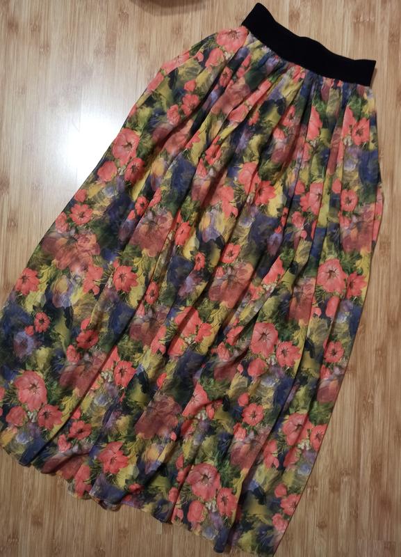 матеріал: шифон розмір: універсальний довжина: 98 Максі-спідниця з яскравим квітковим принтом, виготовлена з хороших матеріалів. Є пояс-резинка, підкладка до колін. Зручна, легка і дуже приємна до тіла. Вільний крій. Вдягалася 1 раз, в ідеальному стані, без дефектів. ціна🏷️ 125 грн способи доставки: Укрпошта або Нова Пошта способи оплати: на карту Приватбанку або наложений платіж (доставка за рахунок покупця) Обміну і повернення нема, тому, будь ласка, уважно читайте інформацію. За детальнішою інформацією чи додатковими фото звертайтеся в приват. Буду рада Вам допомогти. Приємних покупок😊