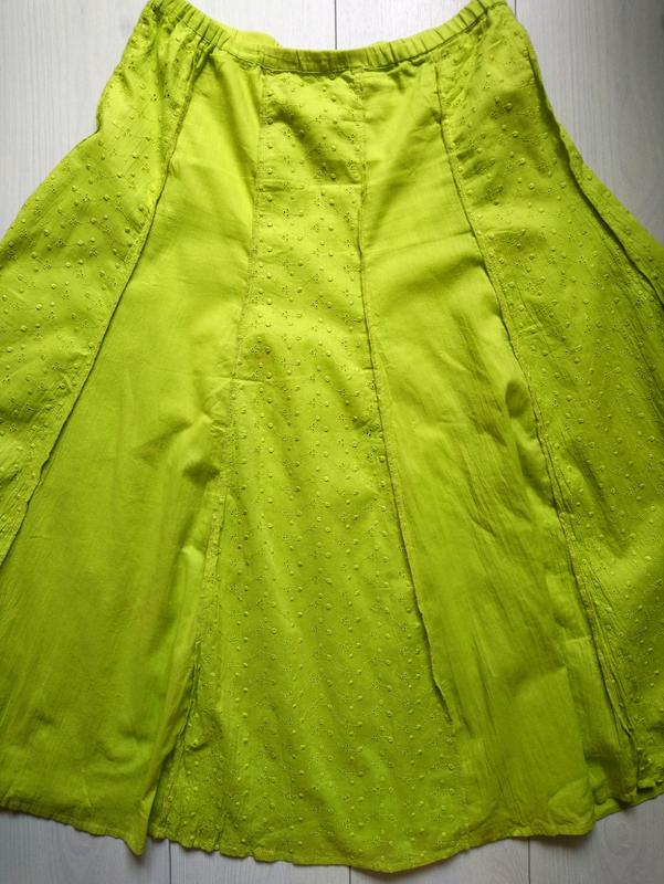 Спідниця в дуже хорошому стані Без дефектів Розмір 12, EURO 40 Матеріал котон Тоненька З підкладкою Пояс на резинці Довжина 85 см Півобсяг пояса 38 см і тягнеться до 50 см
