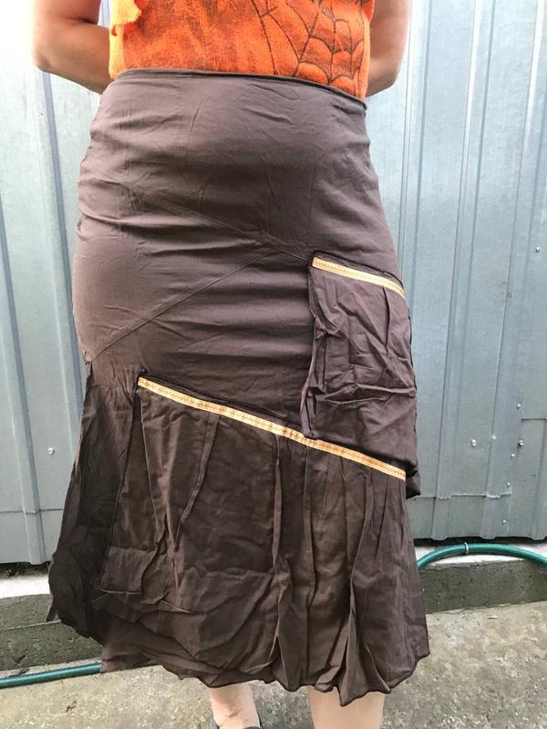 Юбка в очень хорошем состоянии. 100% котон. Очень лёгкая и удобная. На этикетке пишет размер 42, но подходит на М-46 (на мне). Отвечу на вопросы в ЛС.