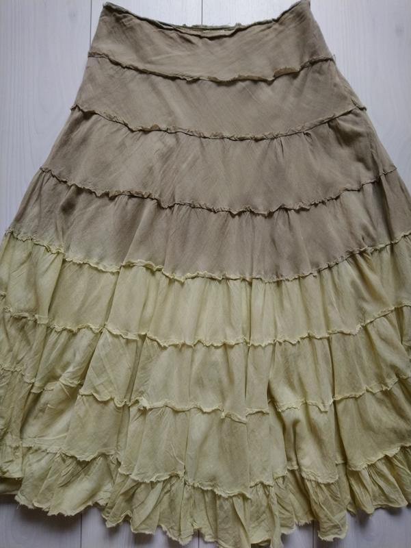 Спідниця в дуже хорошому стані Тоненька Матеріал котон З підкладкою З боку на замочку Розмір 10 Довжина 85 см Півобсяг пояса 37-38 см Півобсяг стегон 60 см