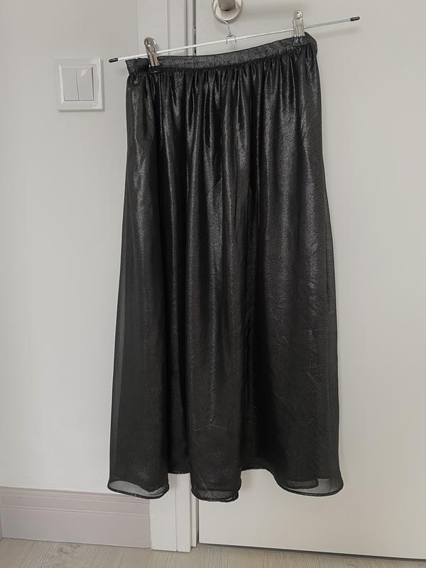 Дуже красива оригінальна спідниця zara. На резинці, є підкладка. Спідниця дуже легка, на сонце з неймовірно красивим сріблястим відтінком. Одягала я її один раз для фотографій, тому стан максимально ідеальне. Нової речі. Заміри: полуобъем талії на резинці 33 см, натягується до 40 см (підлозі) довжина 74 см спідниця повинна виглядати зведеної, але все ж максимальний полуобъем стегон 85 см