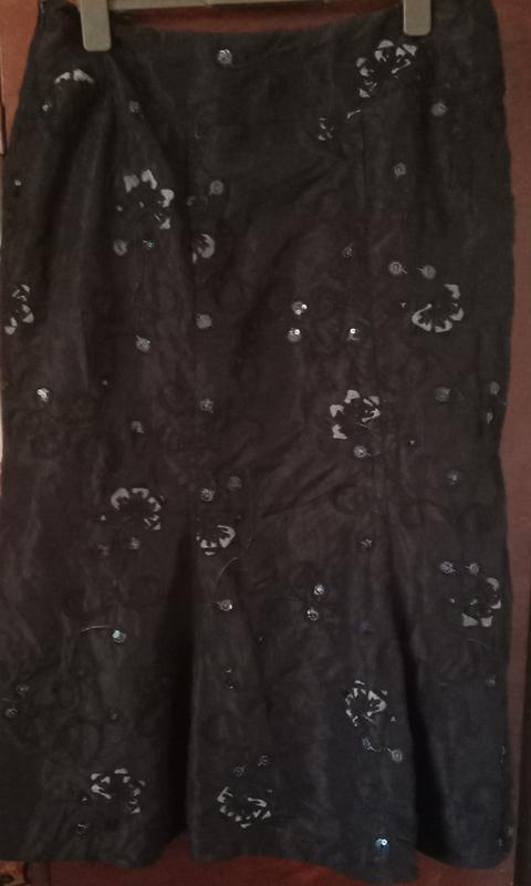 очень красивая,демисезонная юбка, длин.80 ,талия 88 ,с плащевки.