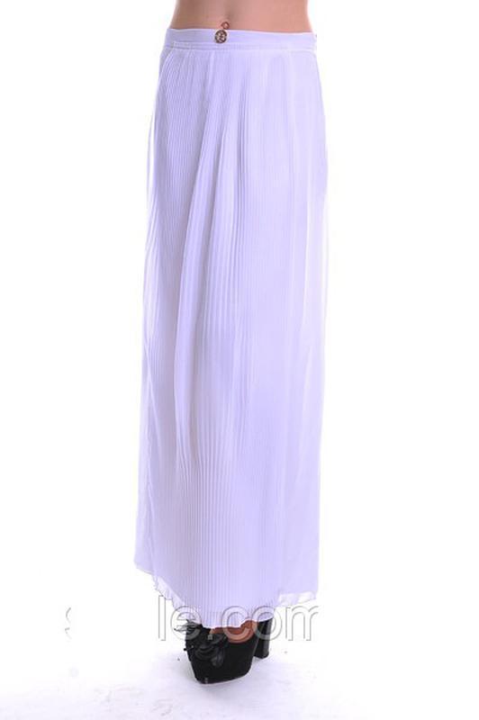 Юбка классического белого цвета . Имеются застежка-молния и крючок . Впереди юбка плиссированная , бока и сзади ровная. Модель выполнена на подкладке. Размерный ряд:36, 38, 40, 42 (евро) . р. 36 : талия-70 см, ОБ-100 см, длина юбки-102 см, подкладка по всей длине юбки. р.38: талия-75 см, ОБ-104 см, длина юбки-102 см, подкладка по всей длине юбки. р.40: талия-80 см, ОБ-108 см, длина юбки-102 см, подкладка по всей длине юбки. р.42: талия-84 см, ОБ-110 см, длина юбки-102 см, подкладка по всей длине юбки. Материал:шифон. Цвет: белый. Производство: Турция.