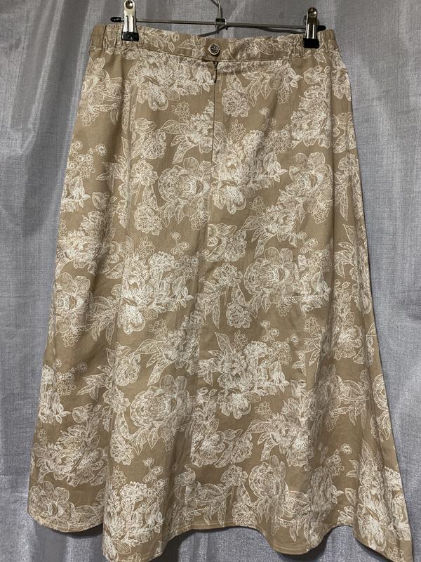 Спідниця з щільної бавовни, трохи тягнеться у поясі завдяки резинкам по боках. Заміри: довжина - 72см., ПОТ - 36см., ПОБ - 54см., 97% бавовна, 3% еластан