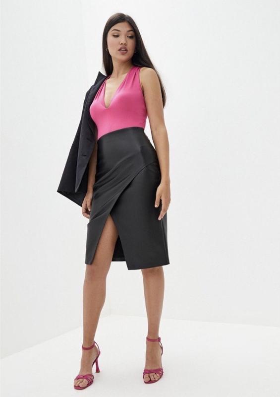 Міді спідниця під шкіру з розрізом / миди юбка под кожу с разрезом