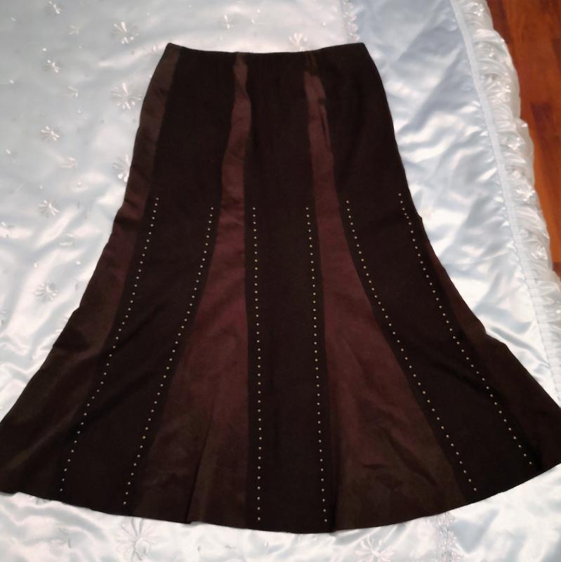 Теплая зимняя юбка годе, клинья разной фактуры, украшены заклепками