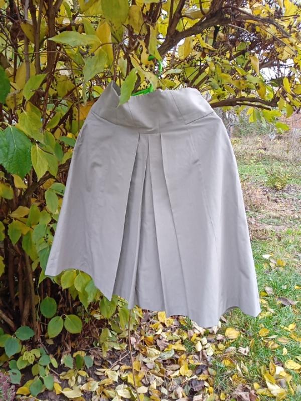 длина 60,пот 37,пояс широкий 10, сбоку на молнии 20,низ 90,складка двойная спереди и сзади, серая, красивая, нюанс на фото показано, это на поясе розовая точка, как от помады.
