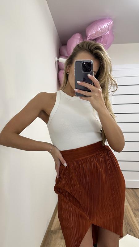 Спідниця коричневого кольору розмір 32 завищена на талії, спереду розріз