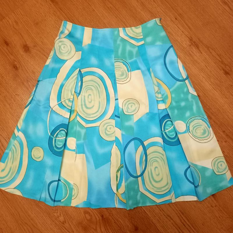 Шикарна спідниця котонова в складку на підкладці, яскраві та ніжні кольори. Гарної якості, жодних дефектів. Довжина 58см, талія 68см, бедра 82...см