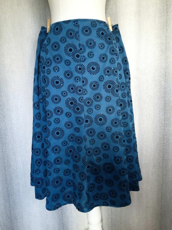 Женская яркая нарядная бирюзовая юбка с напылением Clothes Control черное под бархат напыление, с подъюбником, с блестками в одном размере, размер 18 замеры: ПО пояса 44 см, по спине резинка, можно потянуть до 55 см ПО бедер 70 см, на 25 см ниже Длина 74 см. отлично подойдет под черную велюровую блузу. состояние новой