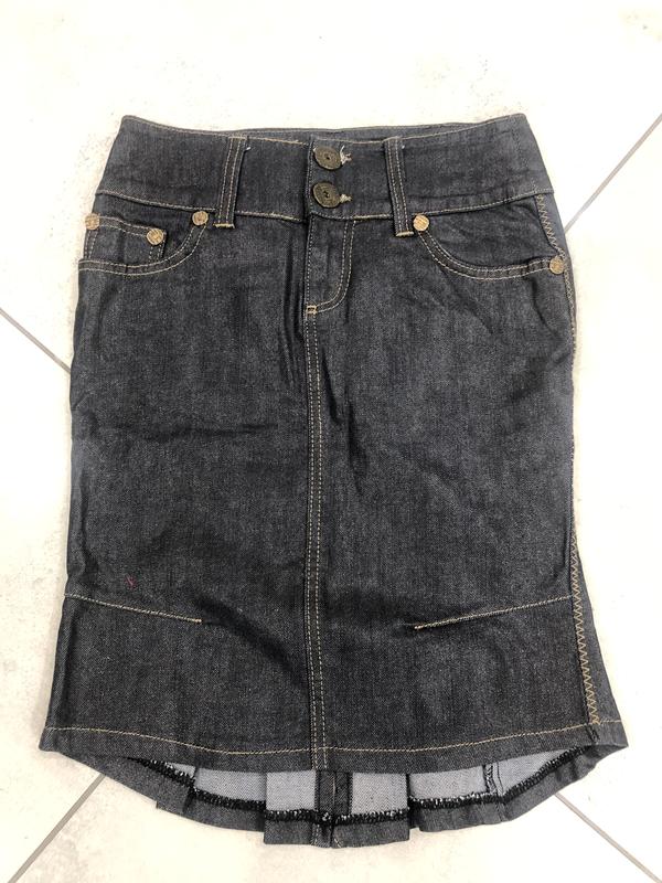 Красивая джинсовая юбка,к низу заужена.Интересного покроя,джинс плотный с напылением.Очень стильно смотрится