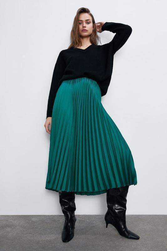 Юбка плиссе Zara изумрудного цвета плиссированная р. S-M В идеале