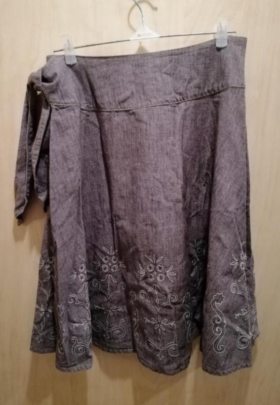 Катоновая юбка с красивой кокеткой и завязаным бантом на боку. Плотная ткань , держит форму , длина за колено продаж від 100 гривень