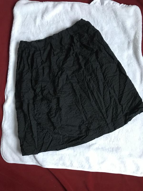 Юбка миди темно-синего цвета.Ткань тонкая, мягкая, по типу жатки.Застегивается на пуговицу сзади на поясе. Длина-62 см., ПОТ: 45 см., ПОБ: 75 см.