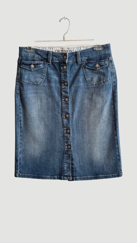 Джинсовая юбка на пуговицах бренда M&S, в отличном состоянии ( состояние новой вещи). Состав ткани: 98% котон, 2% еластан. Сделано в Египте. Размер указан 12 (М). Замеры: ПОТ- 42 см, ПОБ - 48см, длина - 60 см. Пересылка по предоплате или безопасная оплата.