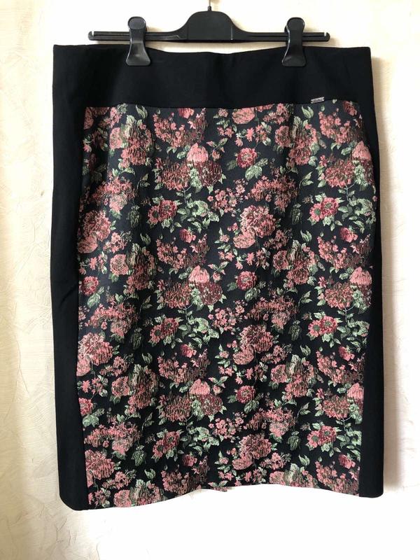 Юбка очень красивая, дорого смотрится. По бокам черные вставки, стесняющие человека.Замеры-ПОТ-50; ПОБ-60; длина-72.