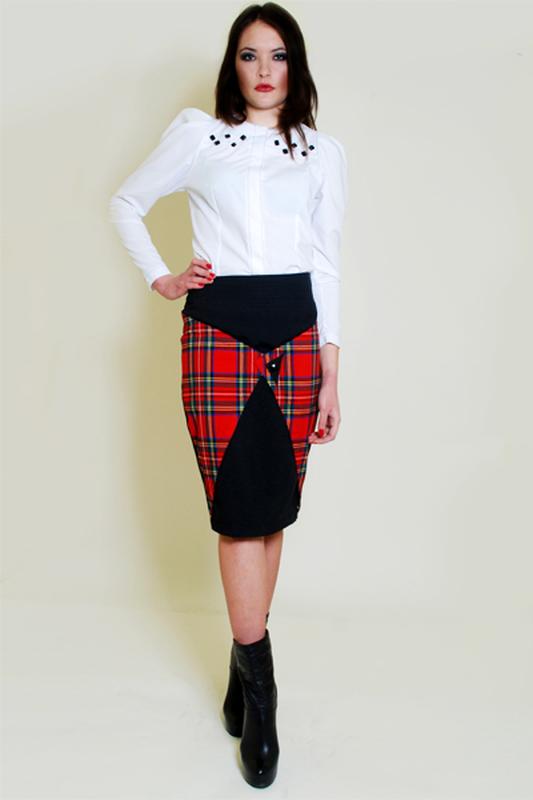 Авторская юбка-карандаш длиной на подкладке выполнена из плотного черного габардина. Изысканная юбка украшена двумя треугольными деталями из "шотландки" Стильная юбка плотно облегает фигуру, подчеркивая женственные изгибы и создавая соблазнительный силуэт. Элегантная дизайнерская юбка подойдет эффектным бизнес-леди для повседневной носки в офисе и для деловых встреч. На обхват бедер 87-88 см. Состав: Габардин, 100% полиэстер; подкладка - 100% вискоза Пересылка бесплатно