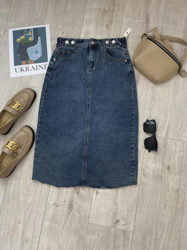 Джинсовая юбка, сзади разрез, длина миди, высокая посадка Размер М Состояние: новый Длина: 68 см. Полу обхват талии: 34 см. Полу обхват бедер: 44см. Ложится по фигуре, хорошо тянется.