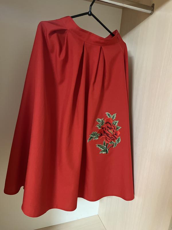 На молнии с вышивкой цветочком. Длина 84, от 60 ( не тянется )